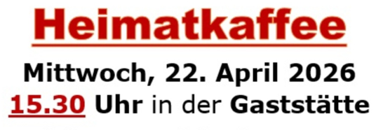 Save the date – 24.04.2026- nächster Heimatabend an gewohnter Stelle und zur gewohnten Zeit.